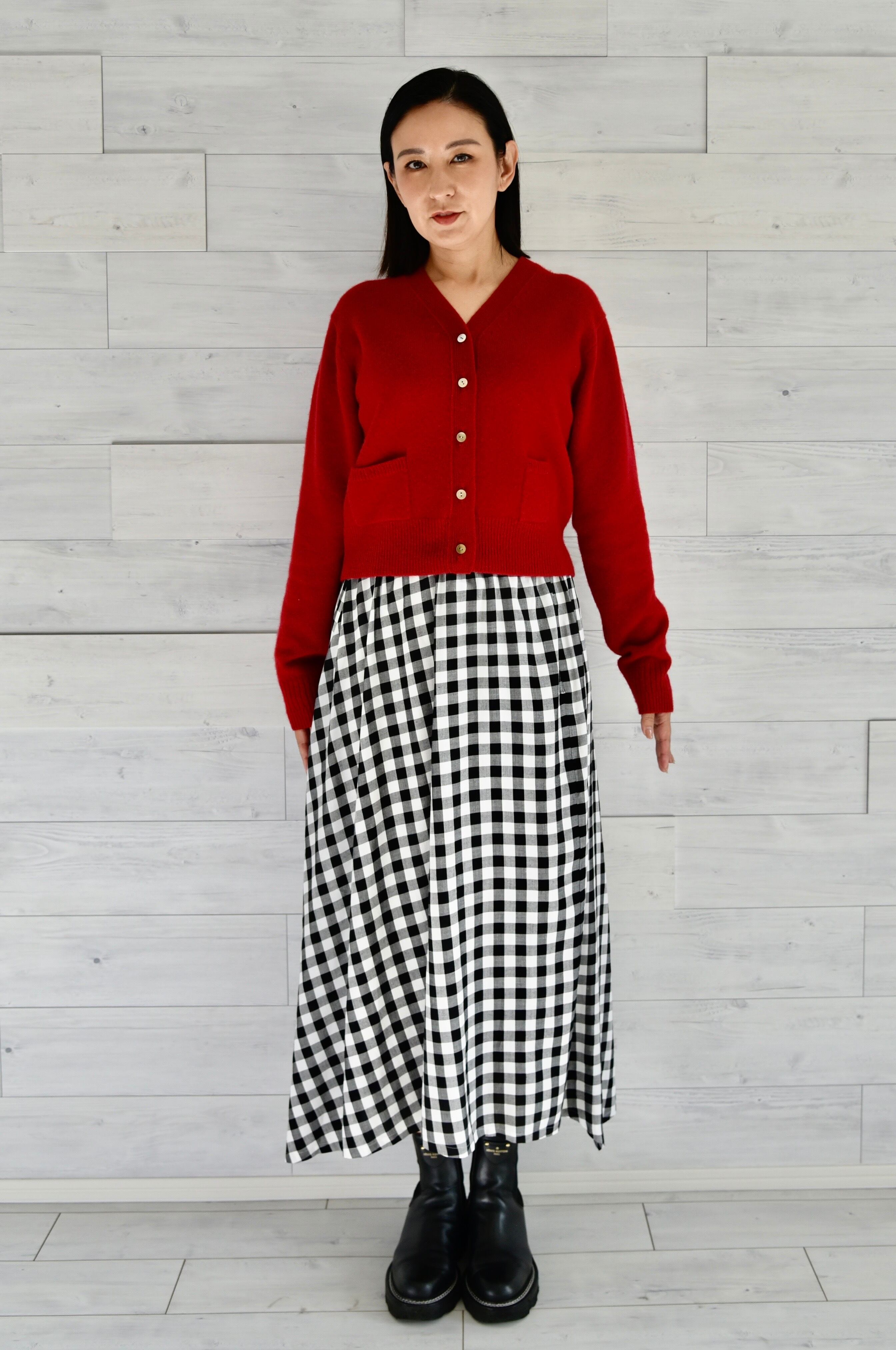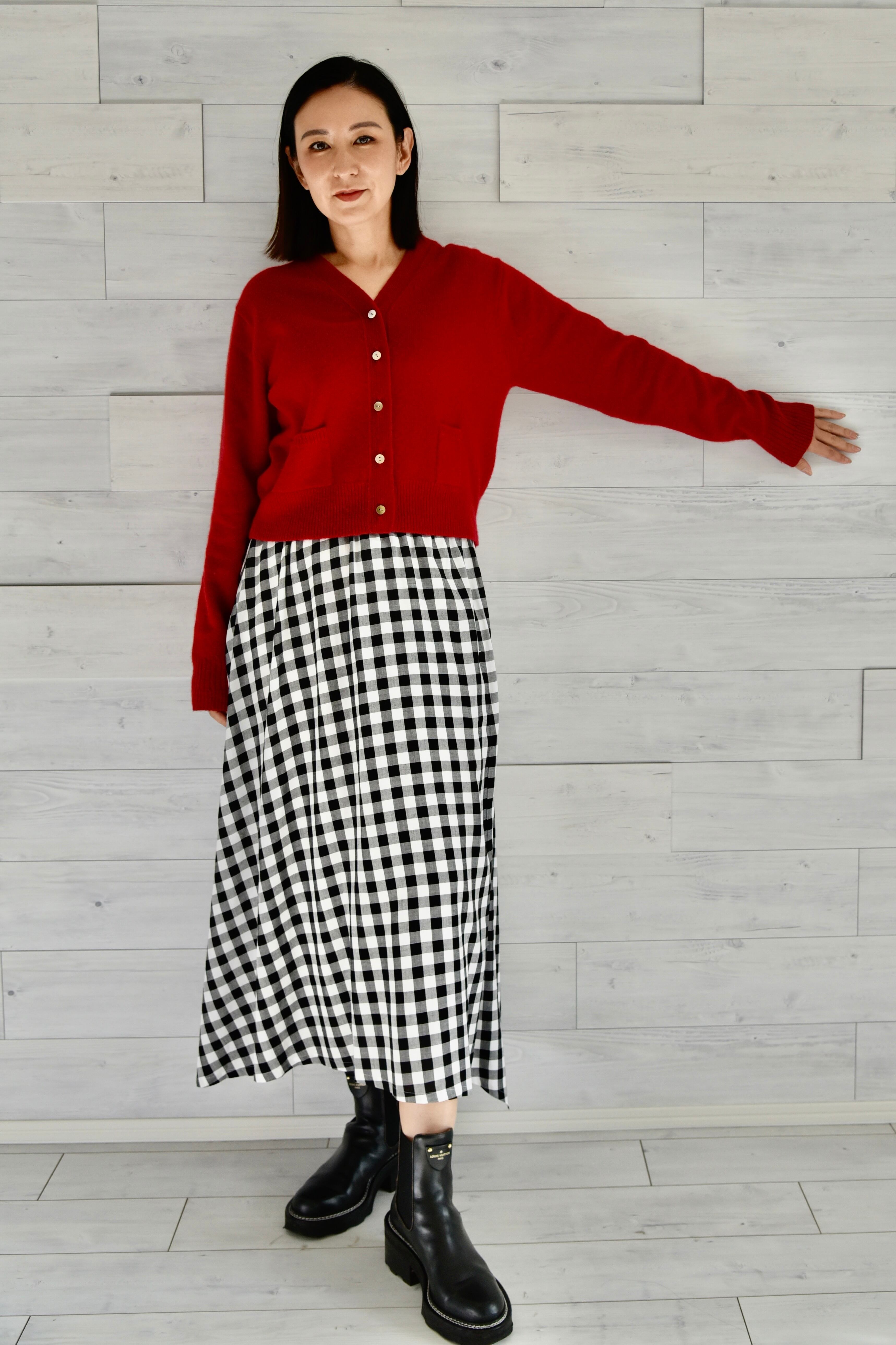 スラックスはもちろん、ロングワンピースやボリュームスカートとのスタイリングにも合います。
