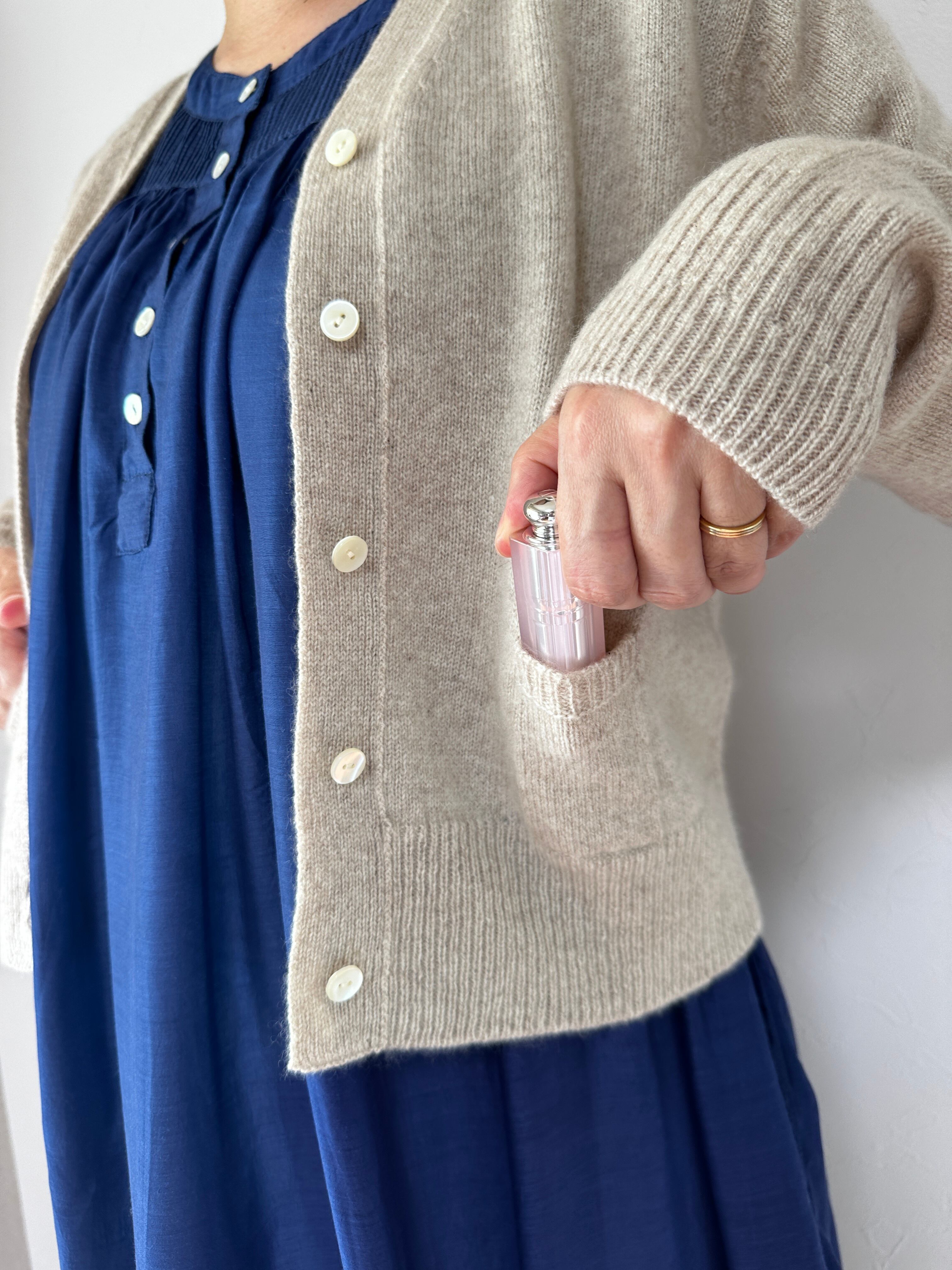 カシミヤのきめ細やかな滑らかさと柔らかさがとても贅沢なカーディガンです。